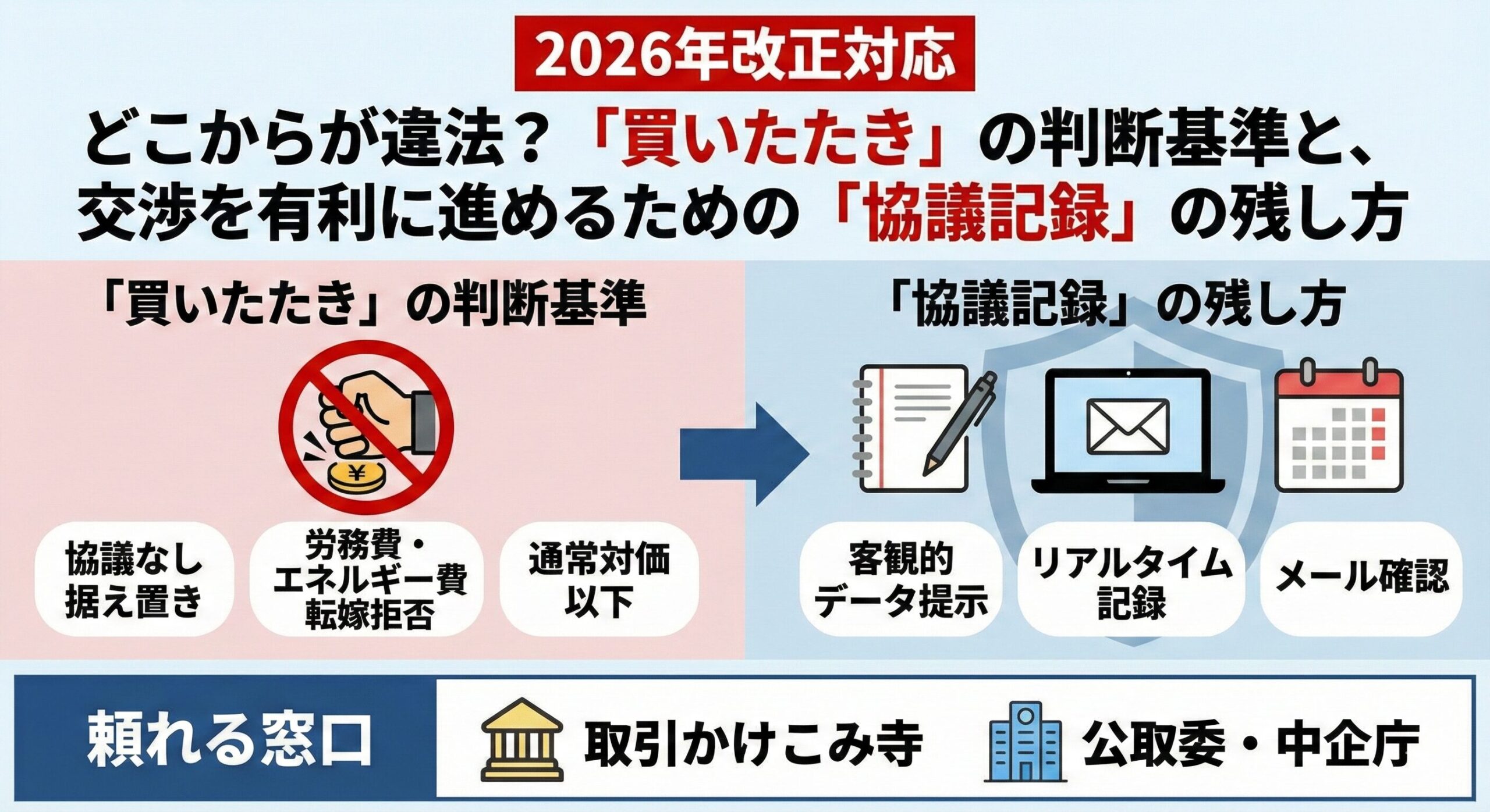 【取適法改正対応】どこからが違法?「買いたたき」の判断基準と、「協議記録」の残し方